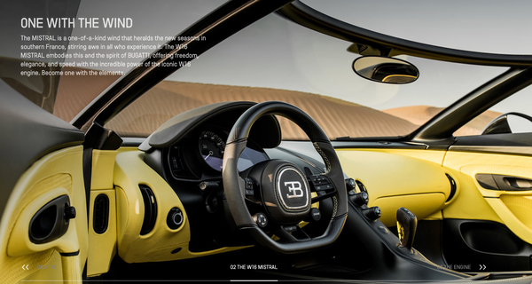 I took the lead on copy for the microsite crafting product specs and featured articles that captured the impeccable craftsmanship, unique tone and spirit of Bugatti.